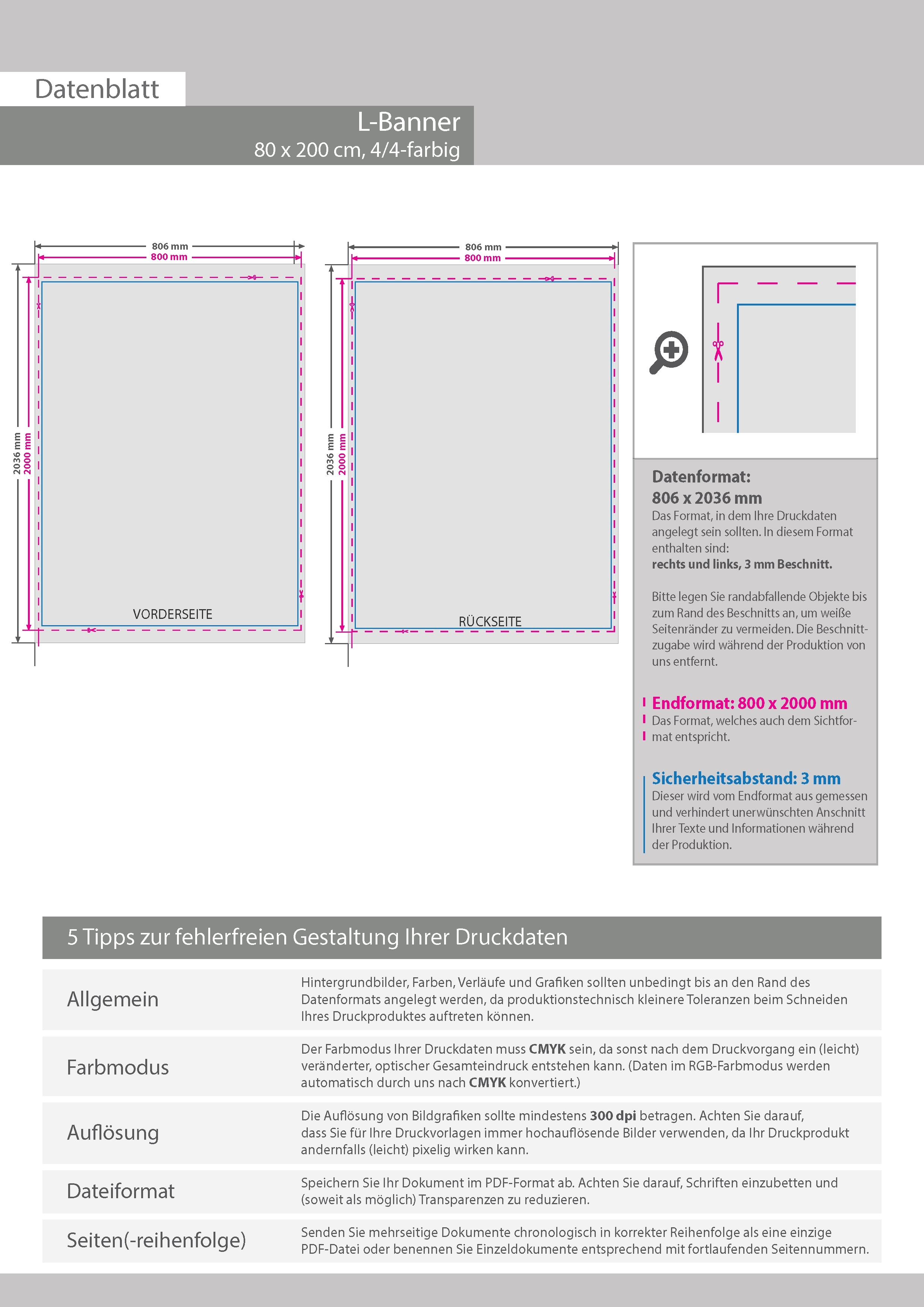 Druckdatenskizzen in der Übersicht: